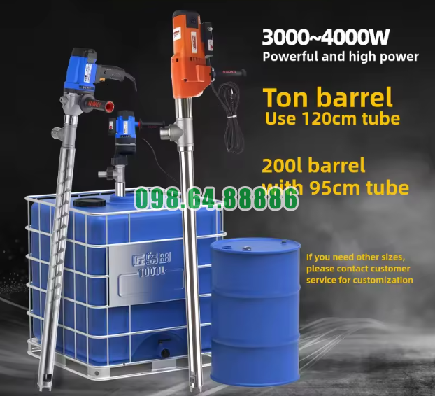 Máy sử dụng ống bơm kích thước Φ45/54 × L950mm, đồng thời có thể tùy chỉnh chiều dài theo nhu cầu sử dụng. Thiết kế này giúp máy dễ dàng đưa sâu vào thùng phuy 200 lít hoặc thùng tấn, hỗ trợ quá trình hút chất lỏng trực tiếp từ thùng chứa lớn một cách thuận tiện hơn.