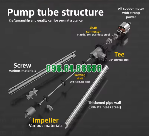 Một trong những đặc điểm nổi bật của Bơm điện hút chất đặc từ thùng phuy JDT-4000W-LQ là phần cánh bơm inox SUS304 nguyên khối. Thiết kế này giúp cánh bơm chịu lực tốt, hạn chế biến dạng và duy trì hiệu quả làm việc khi tiếp xúc với các chất lỏng có độ nhớt cao.