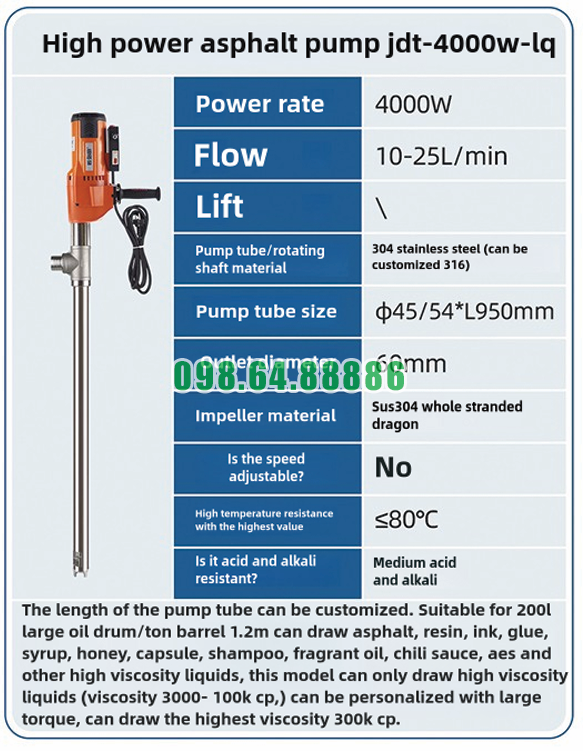 Bơm nhựa đường điện cầm tay JDT-4000W-LQ
