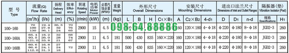 Máy bơm đa tầng cánh trục đứng, bơm tăng áp ISG100-160A, IRG100-160A 11kw, 93.5m3, 28m