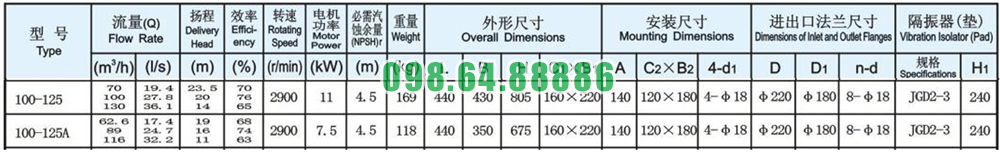 Máy bơm ly tâm, bơm thẳng trục đứng, bơm lùa ISG100-125, IRG100-125 11kw, 100m3, 20m