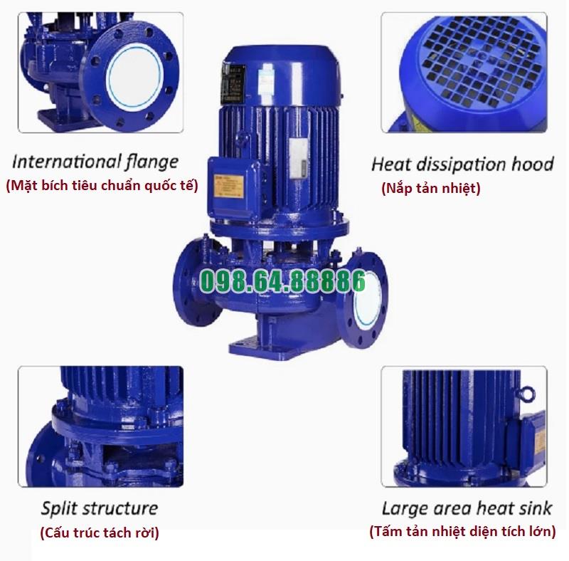 Bơm có thêm giải pháp kết cấu chống giãn nở nhiệt và vật liệu chịu nhiệt tốt hơn so với ISG100-250, do đó phù hợp cho môi trường công nghiệp, nhà máy nhiệt điện và chế biến thực phẩm.