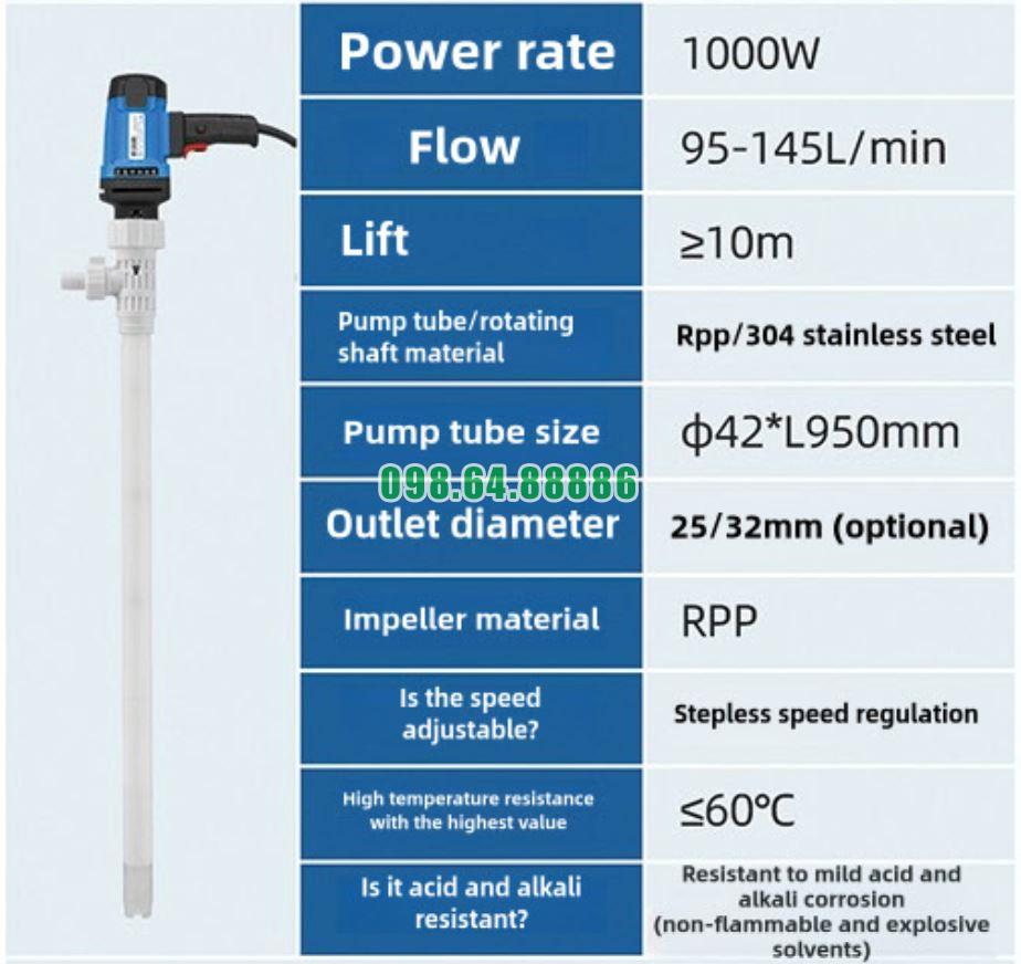 Bơm dầu thùng phuy loại điện JDT-1000W-RPP