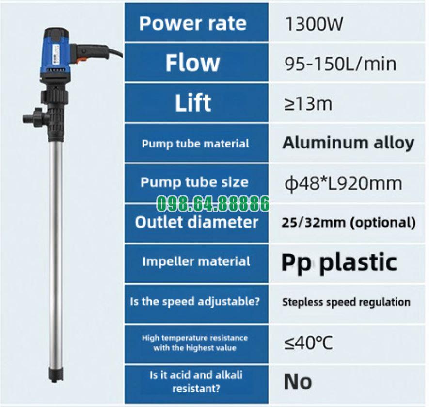 Máy bơm điện nhúng thùng phuy JDT-1300W-L92 và khả năng tiết kiệm điện năng đáng kinh ngạc