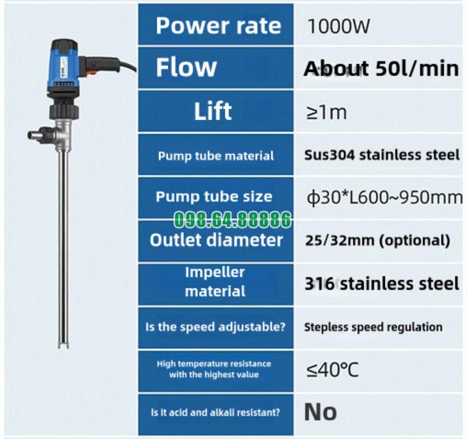 Hóa chất nóng là nhóm môi chất đòi hỏi thiết bị bơm phải có khả năng chịu nhiệt tốt, độ ổn định cao và kiểm soát rủi ro trong quá trình vận hành. Bơm thùng phuy inox chịu nhiệt JDT-1300W-G260 được đánh giá là lựa chọn phù hợp để đáp ứng các yêu cầu này khi xử lý và sang chiết hóa chất ở nhiệt độ cao.