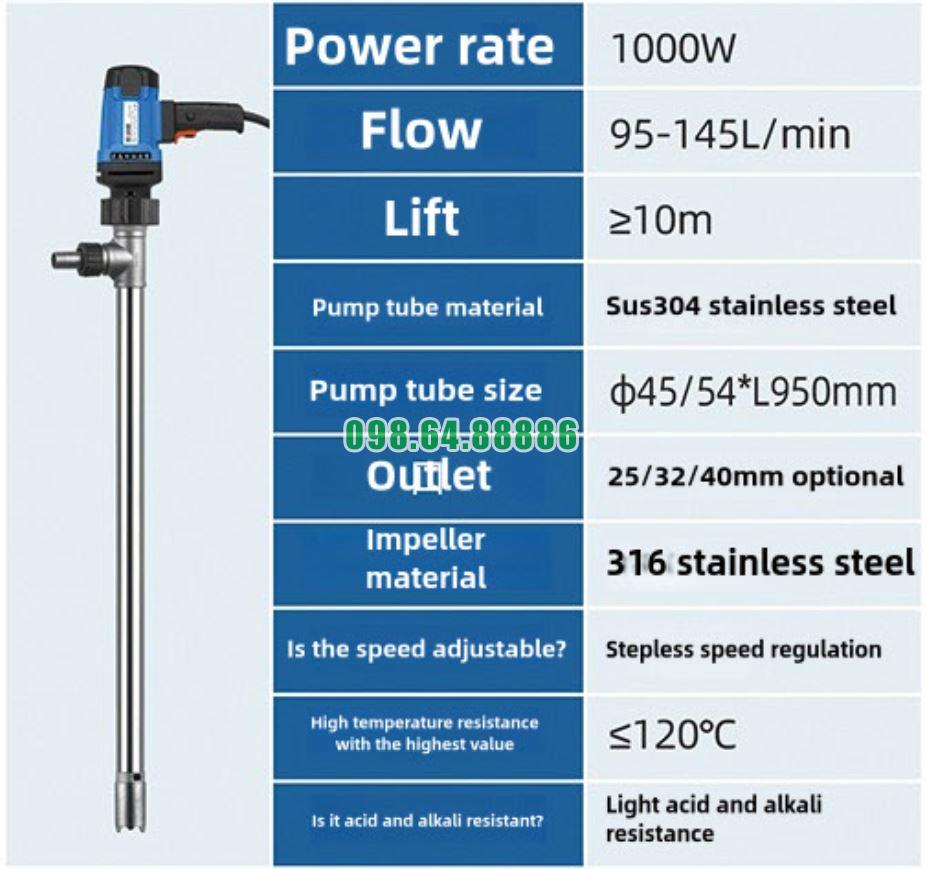 Bơm rót dầu thùng phuy JDT-1000W-G120