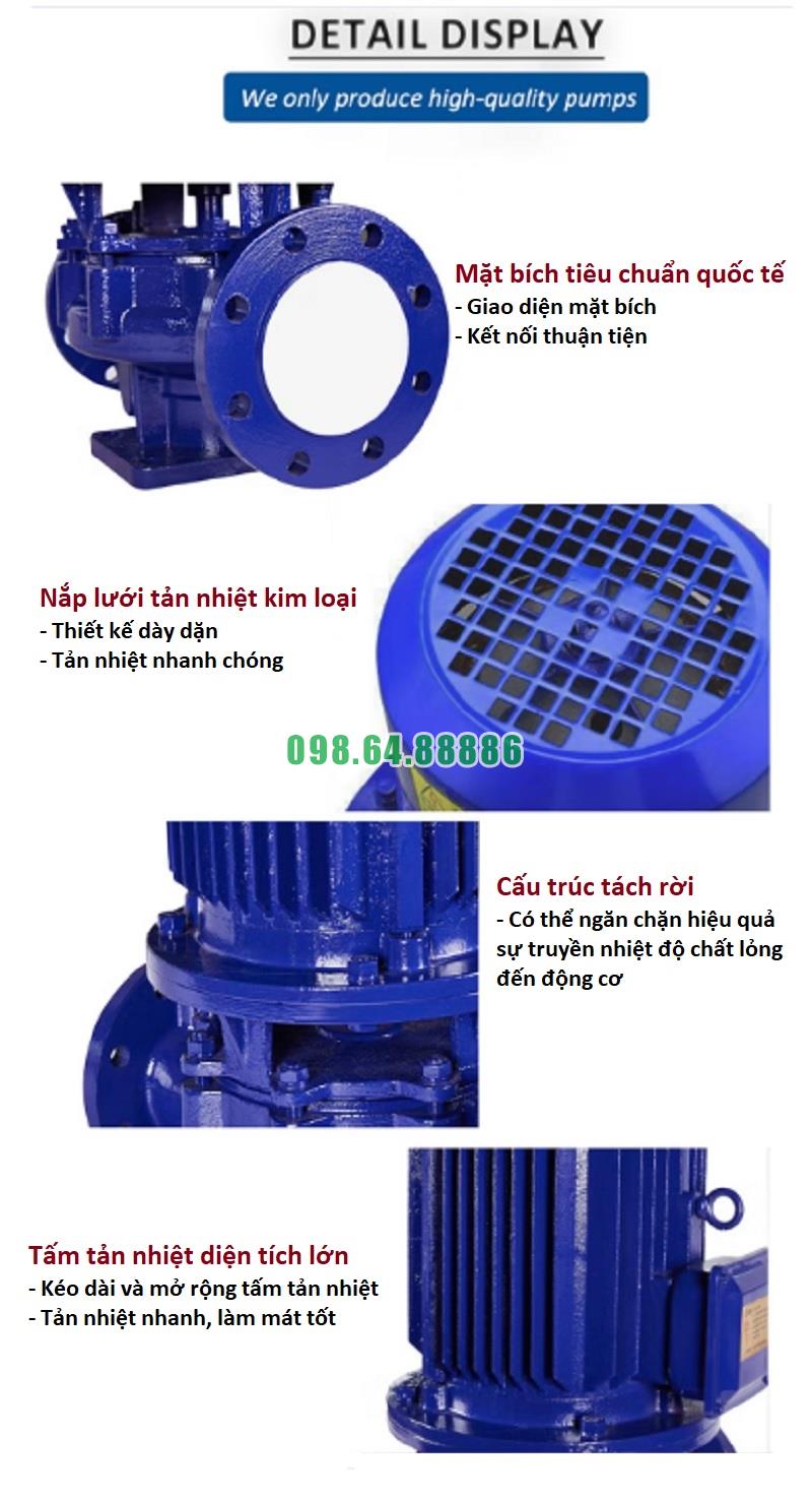 Máy bơm ly tâm, bơm thẳng trục đứng, bơm lùa ISG100-125, IRG100-125 11kw, 100m3, 20m